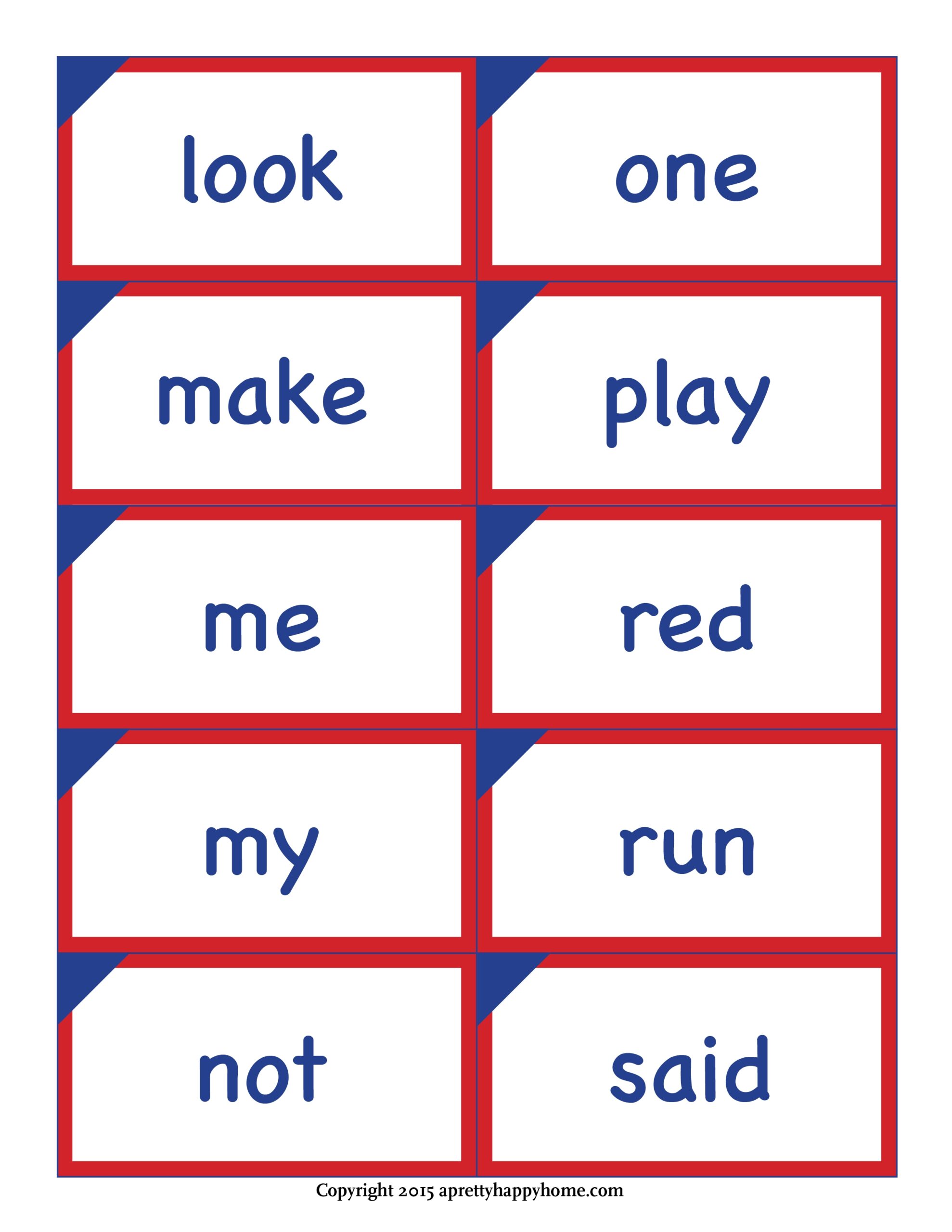 Kindergarten Sight Word Flash Cards Free Printable A Pretty Happy Home