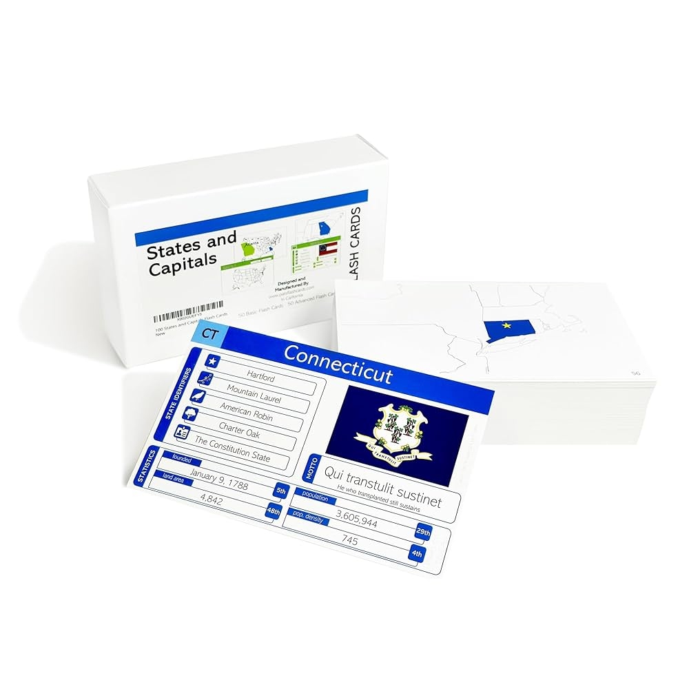100 States And Capitals Flashcards Comes With 50 Beginner Cards And 50 Highly Detailed Advanced Maps Amazon de Toys