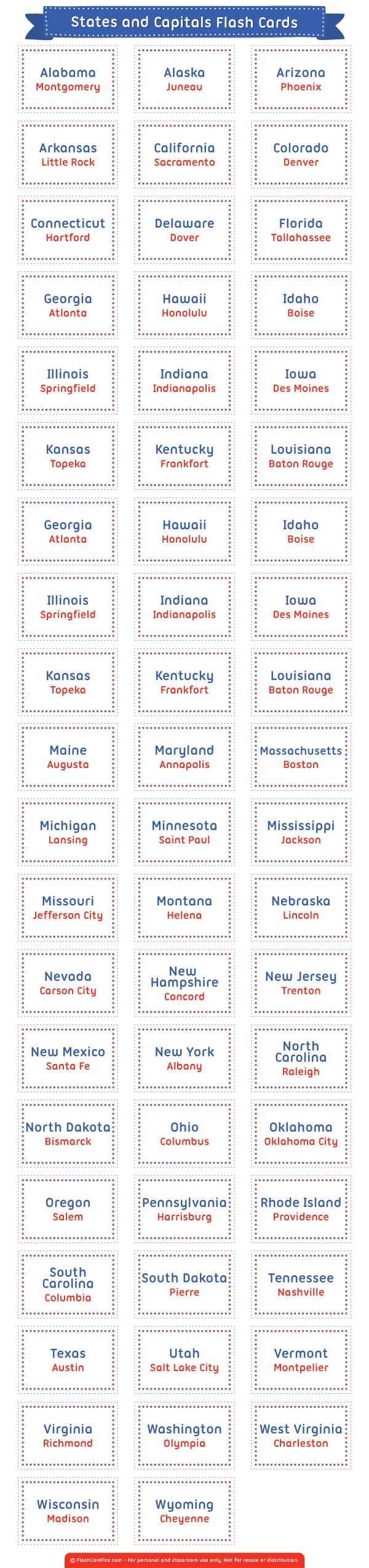 Printable States And Capitals Flash Cards