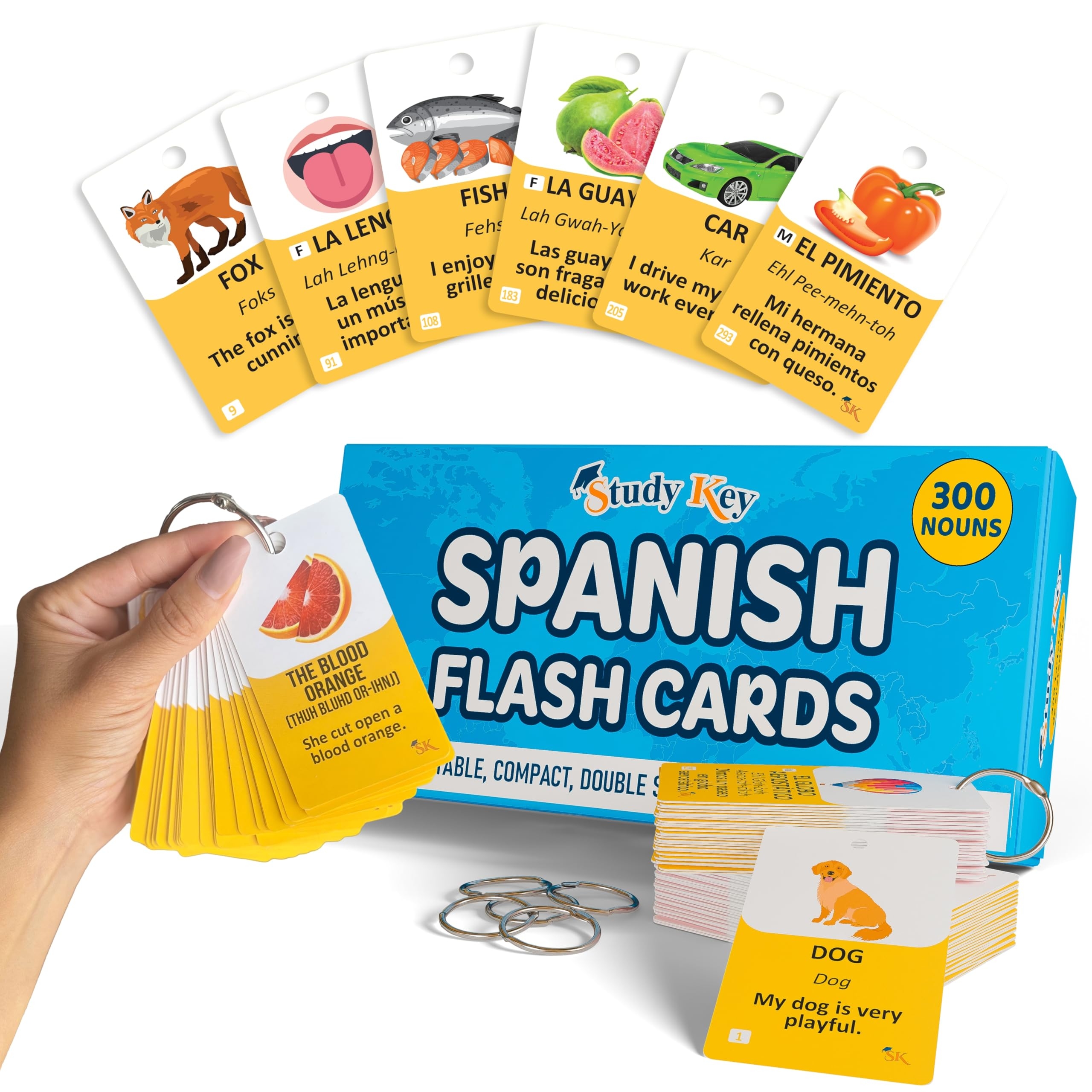 Amazon 300 Vocabulary Flashcards Double Sided English Spanish Bilingual Flashcards For Adults Kids Ages 12 Portable Noun Flash Cards To Learn Spanish For Adult Beginners Toys Games