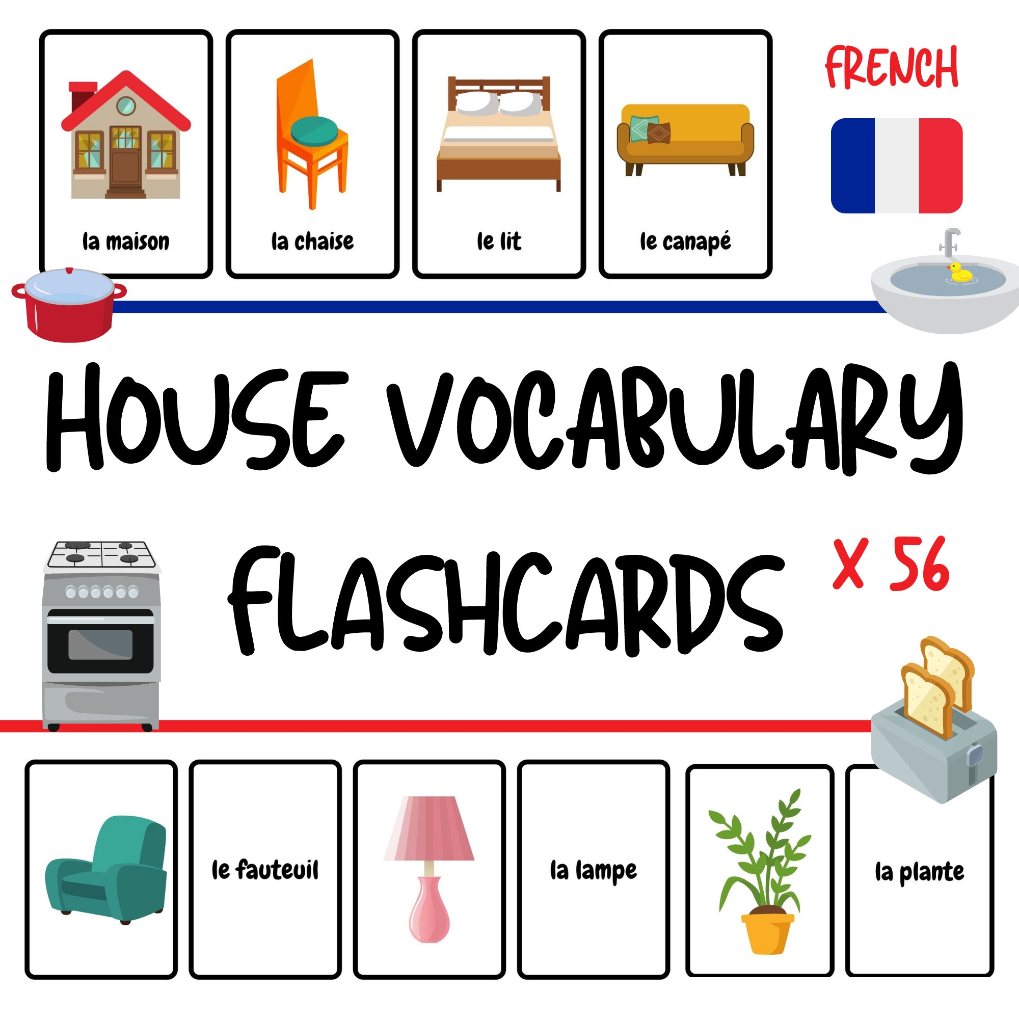 French House Vocabulary Flashcards For Kids 56 Words French Vocabulary Practice For Children PDF Download Etsy New Zealand