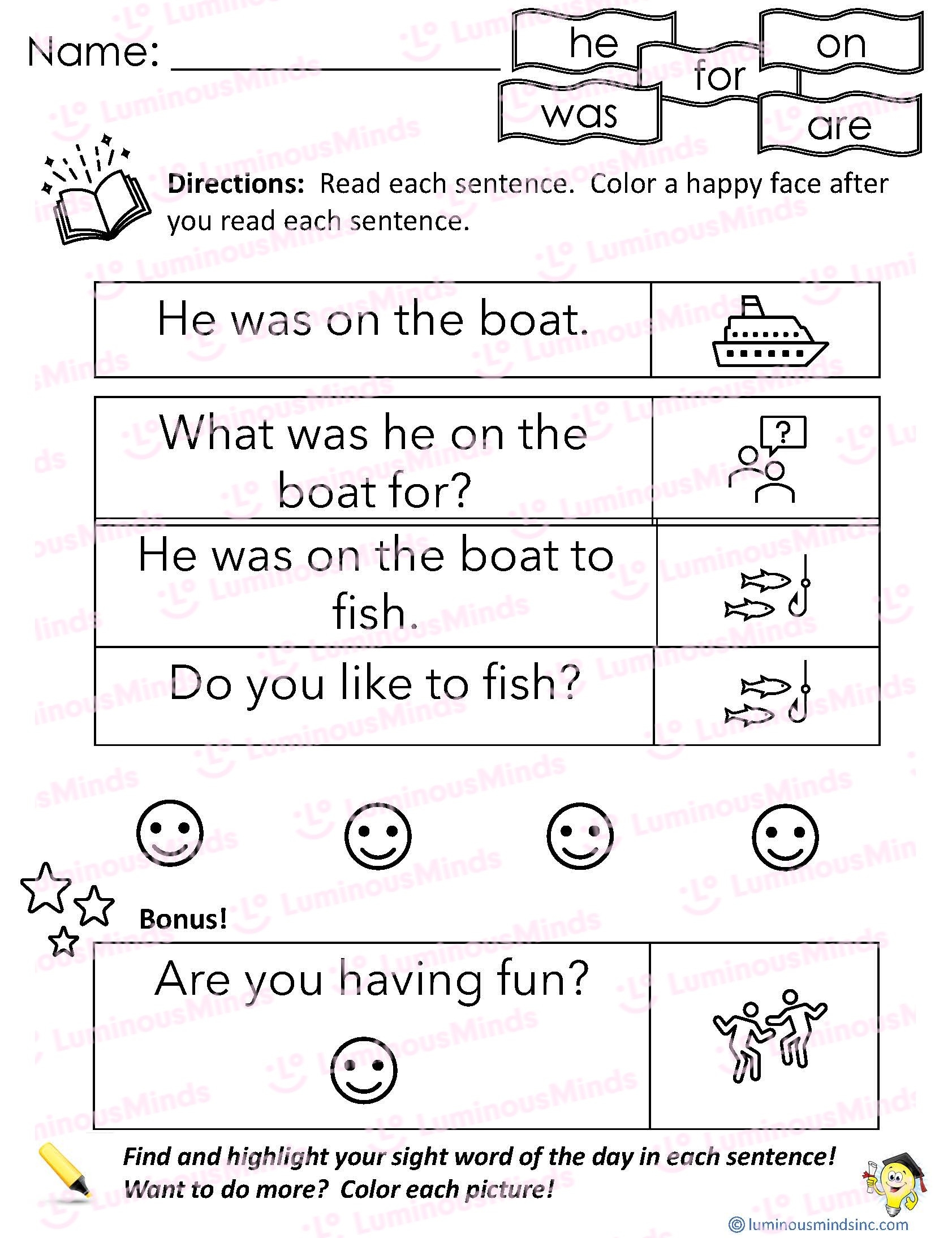 Reading Comprehension Worksheets Reading Review 3 He Was For On And Are