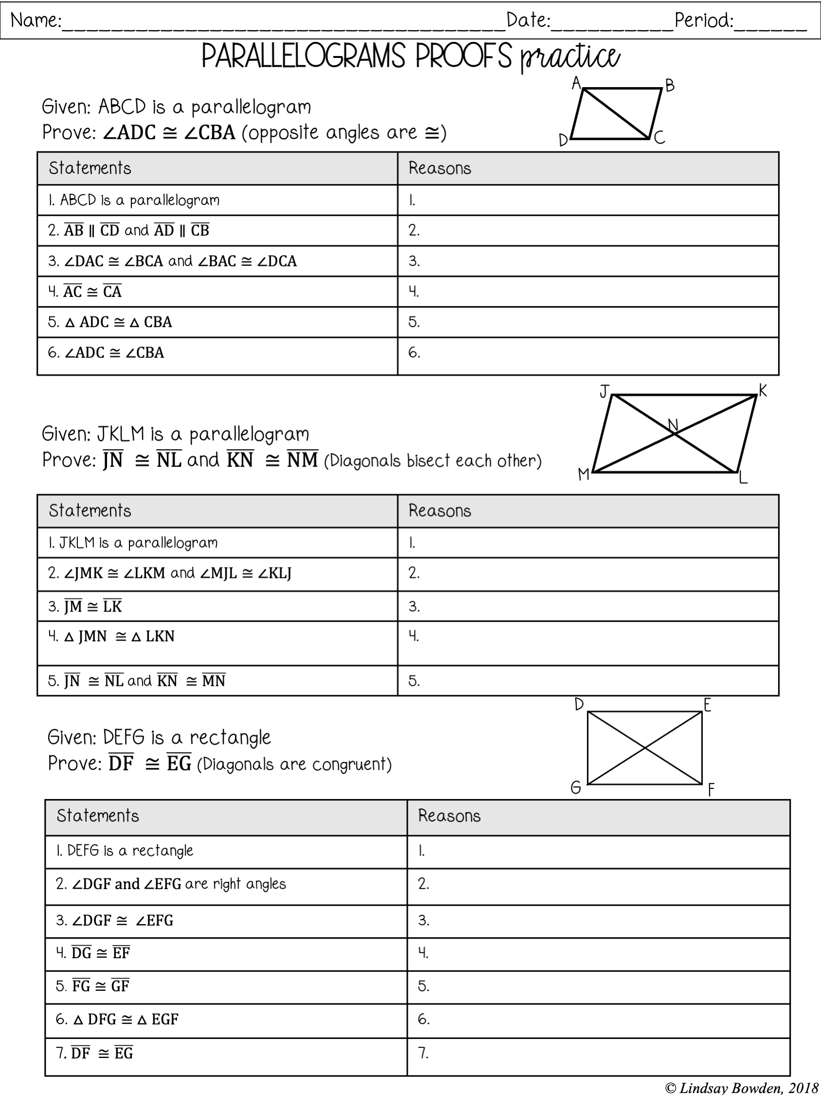 Parallelograms Notes And Worksheets Lindsay Bowden