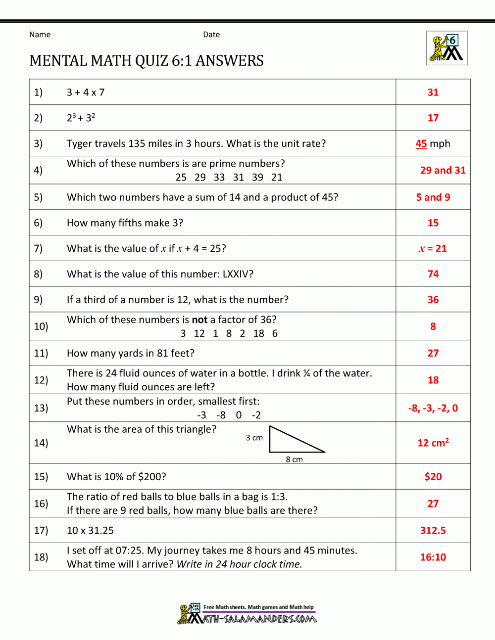 Mental Math 6th Grade