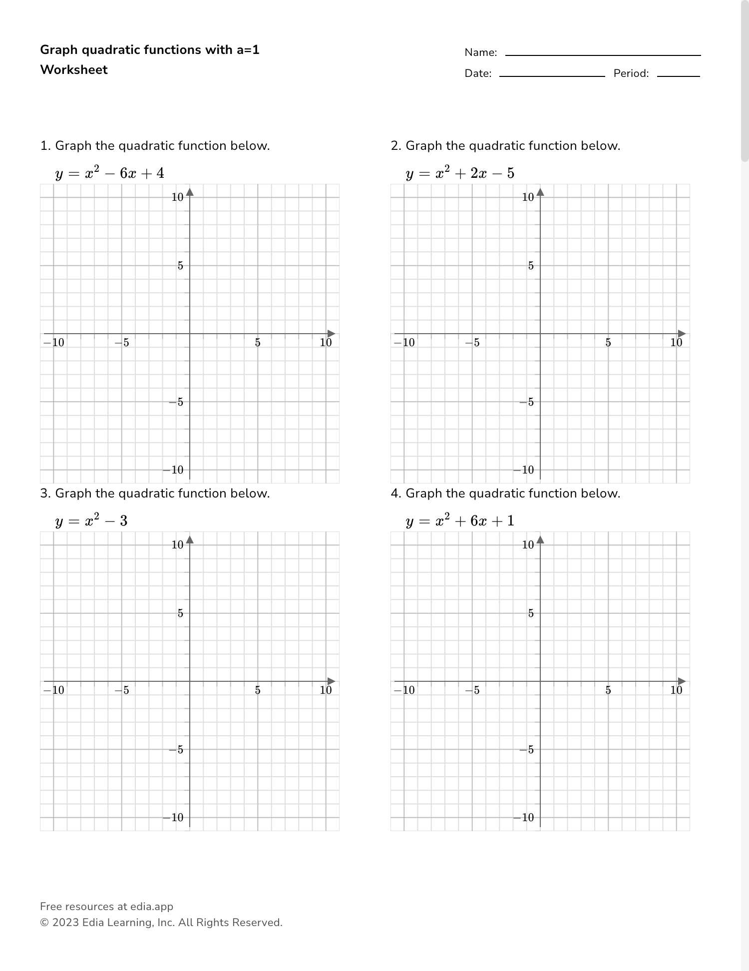 Whether you’re just starting to learn about quadratic functions or you’re looking to brush up on your skills, a graphing quadratic functions worksheet is a fantastic resource to add to your math toolkit. So why wait? Start practicing today and watch your math skills soar to new heights!