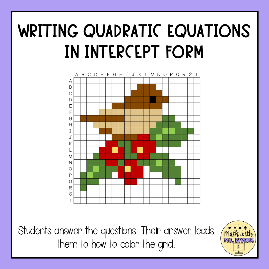 Writing Quadratic Equations In Intercept Form Color By Number Pixel Art Worksheet Made By Teachers
