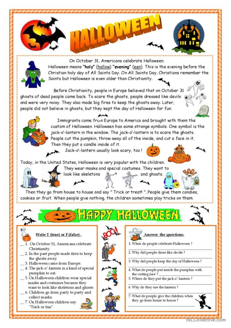 Hallowe en READING WORKSHEET 1 English ESL Worksheets Pdf Doc