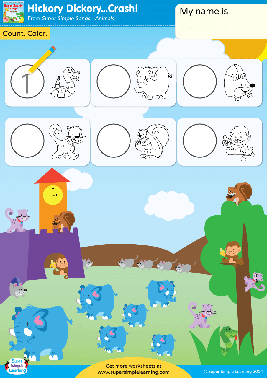 Hickory Dickory Crash Worksheet Vocabulary Coloring Super Simple
