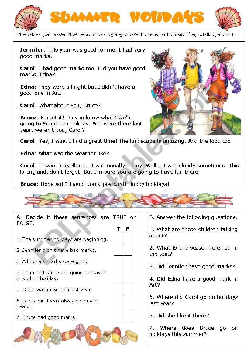 Summer Holidays reading Comprehension ESL Worksheet By Sarasantos Worksheets Library