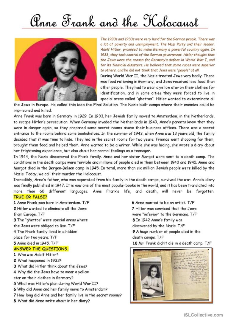 Are you a teacher looking for engaging resources to teach your students about the Holocaust? Look no further! Our collection of Holocaust reading comprehension worksheets in PDF format is perfect for educating students about this important period in history.