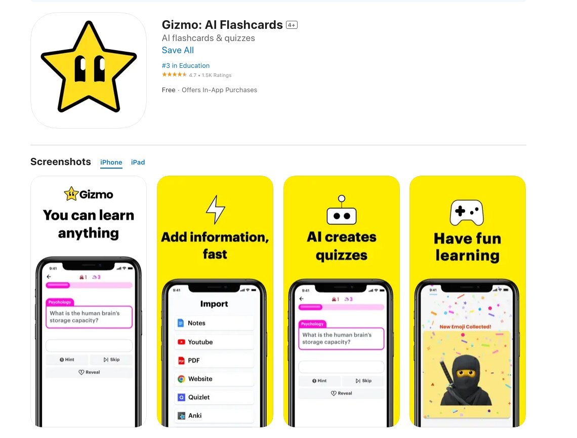 App Store Tracker On X Gizmo AI Flashcards Gained 6 Positions And Is Now 3 In Education On The App Store New Arrivals In Top 100 Toca Boca Jr 94