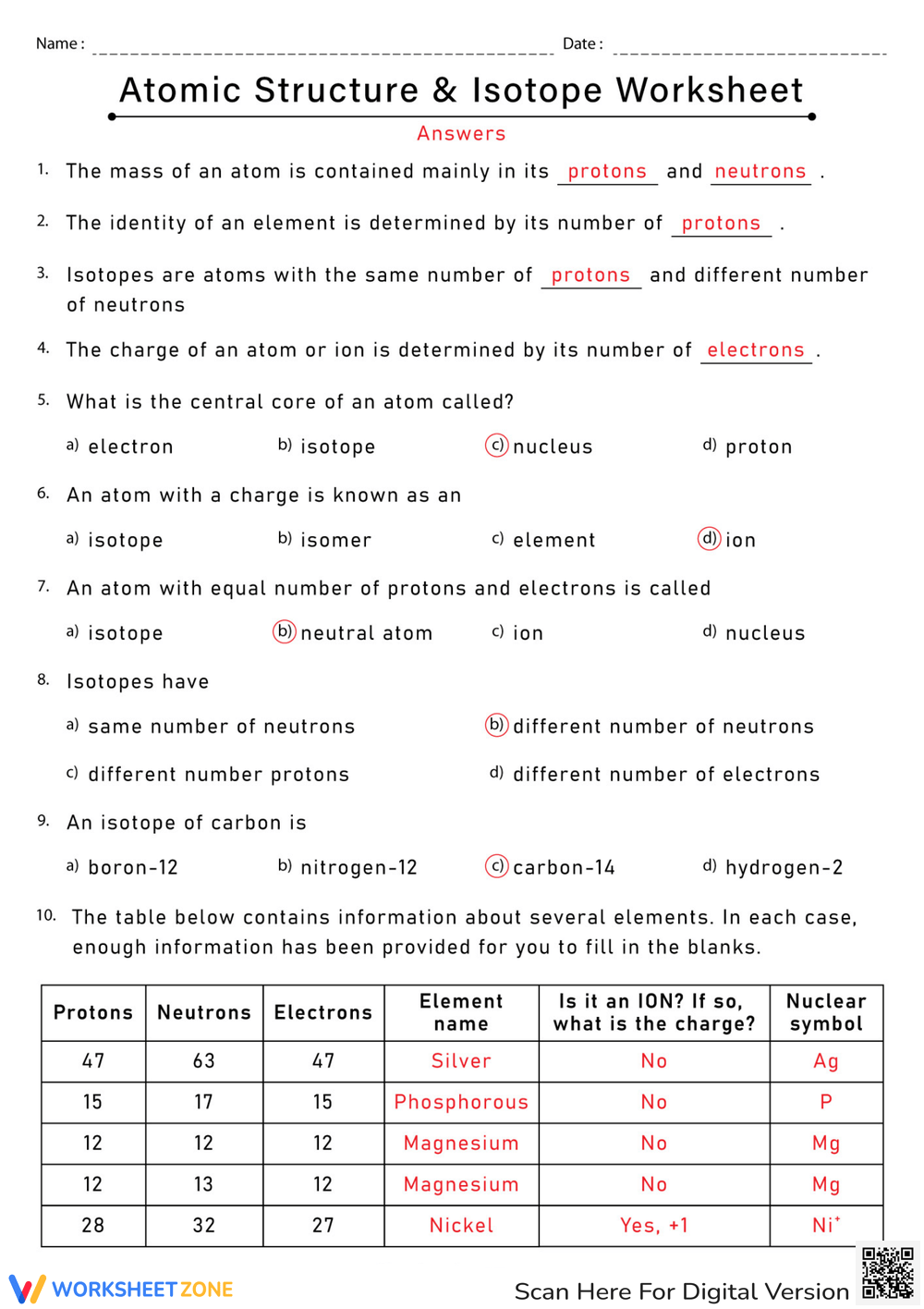 By practicing with our worksheet, you’ll not only improve your knowledge of isotopes but also enhance your problem-solving skills and critical thinking abilities. With clear explanations and helpful hints, you’ll feel confident tackling any isotope-related question that comes your way.