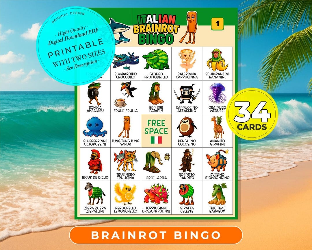 Italian Brainrot Bingo Cards Party Bingo Cards Bingo Board Game Kid s Birthday Party Game Birthday Activity Tralalero Tralala Viral Etsy Australia