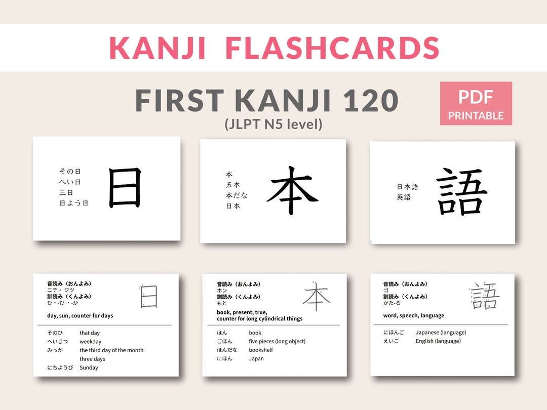 Japanese Kanji Flashcards JLPT N5 Vocabulary printable PDF Etsy Denmark