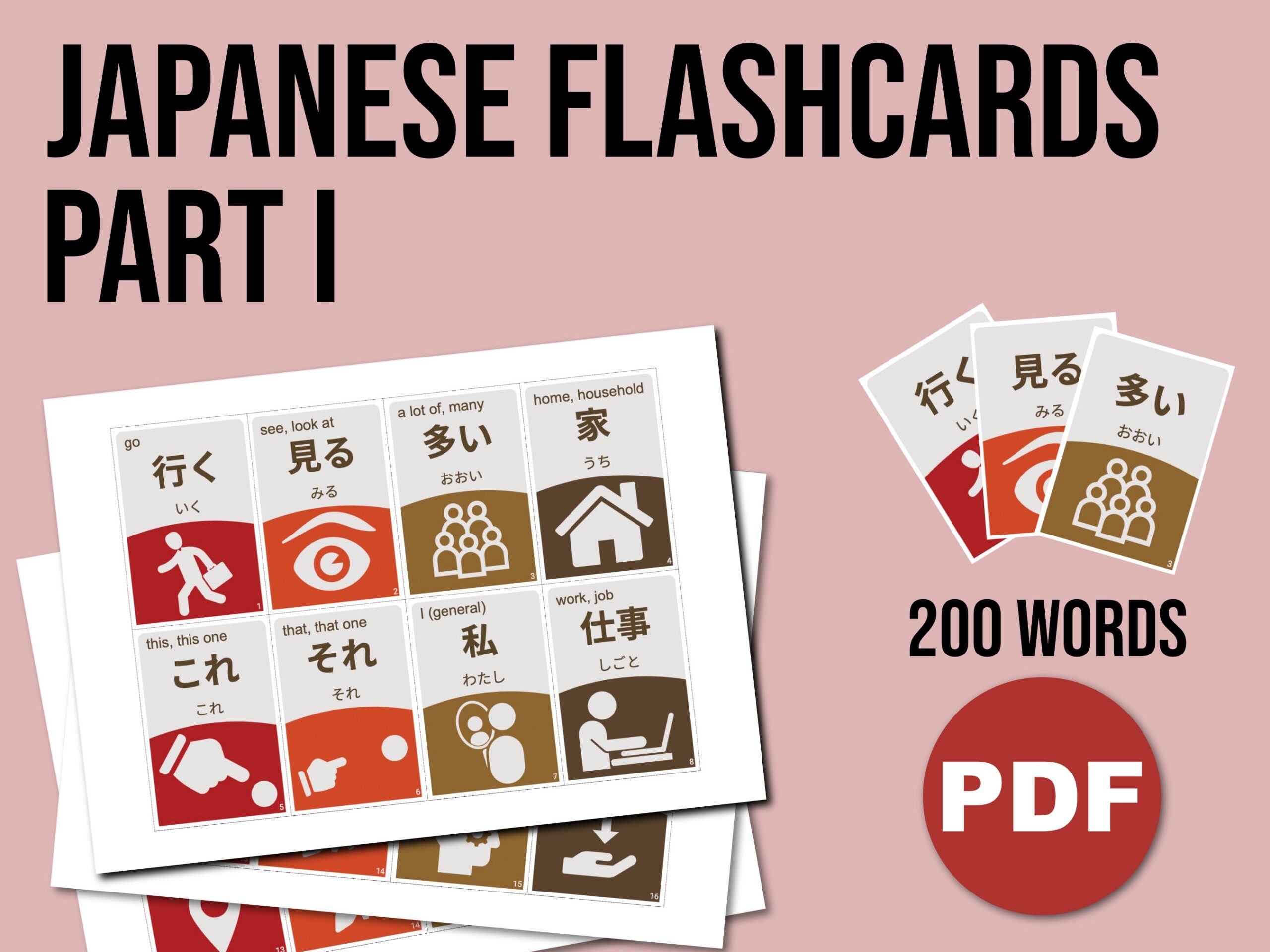 Japanese Flashcards Learn 200 Kanji Words printable Digital Download Etsy