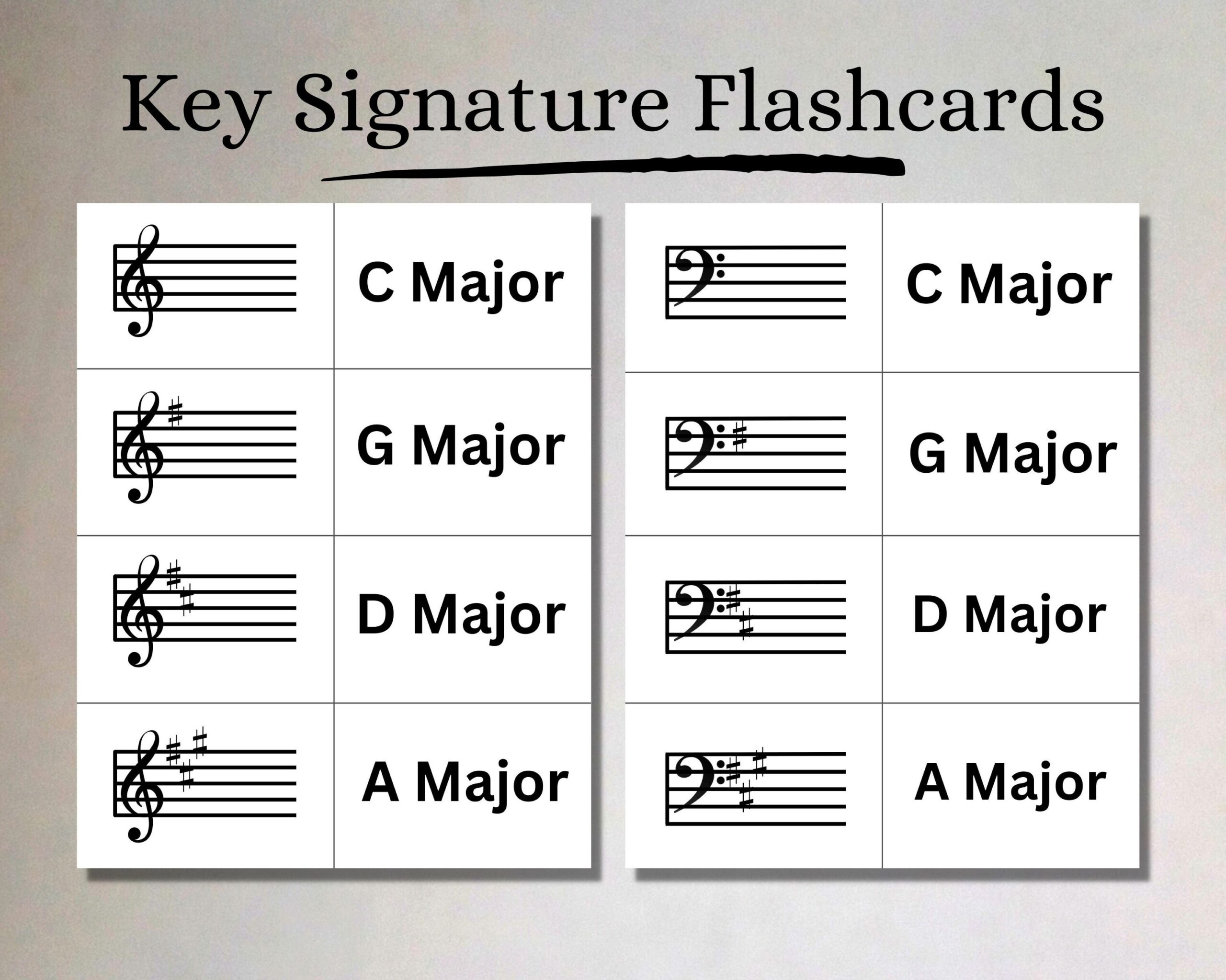 Printable Key Signature Flashcards Major Keys Treble And Bass Clef Music Theory Flashcards For Instant Download In A4 And US Letter Etsy Canada