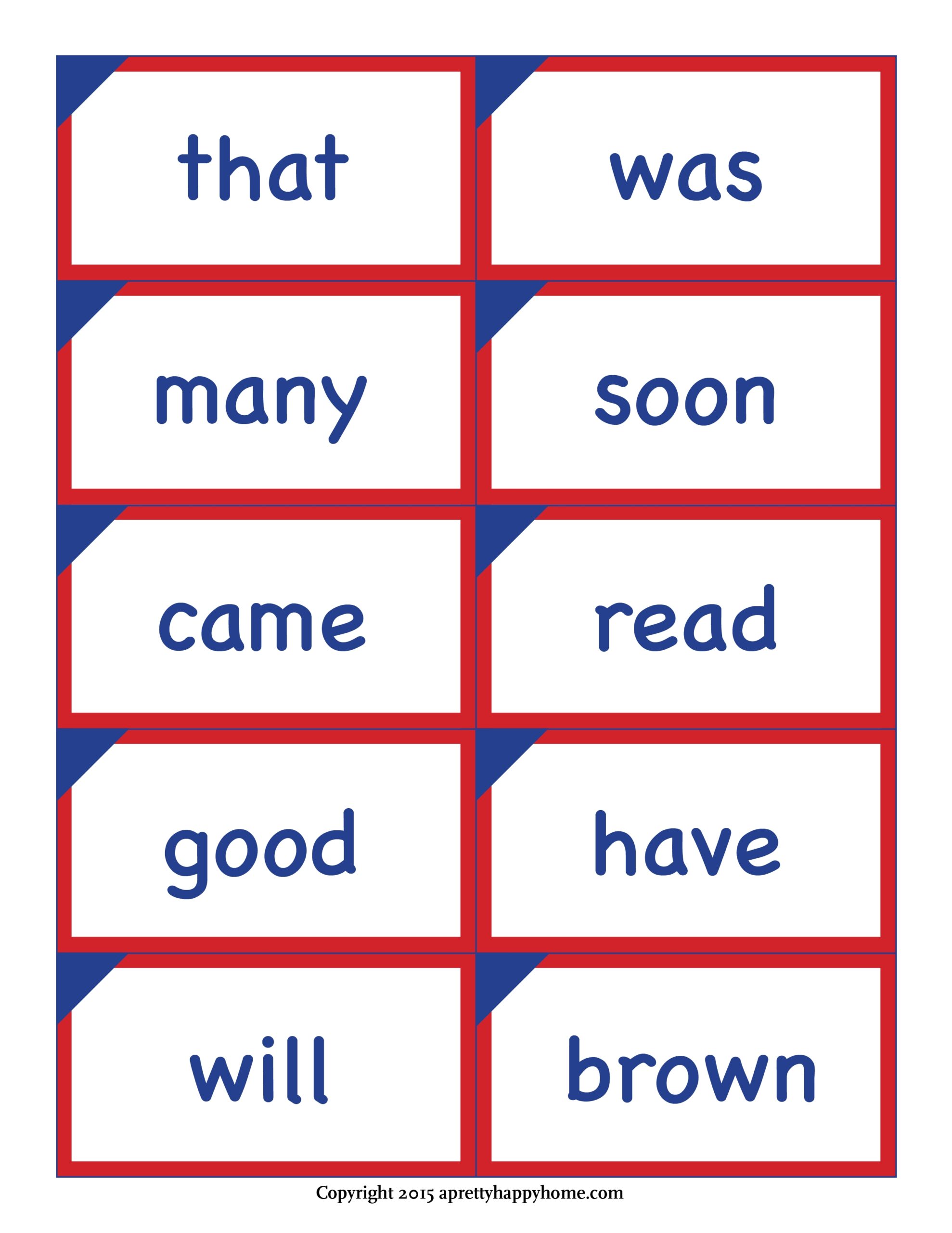 Kindergarten Sight Word Flash Cards Free Printable A Pretty Happy Home