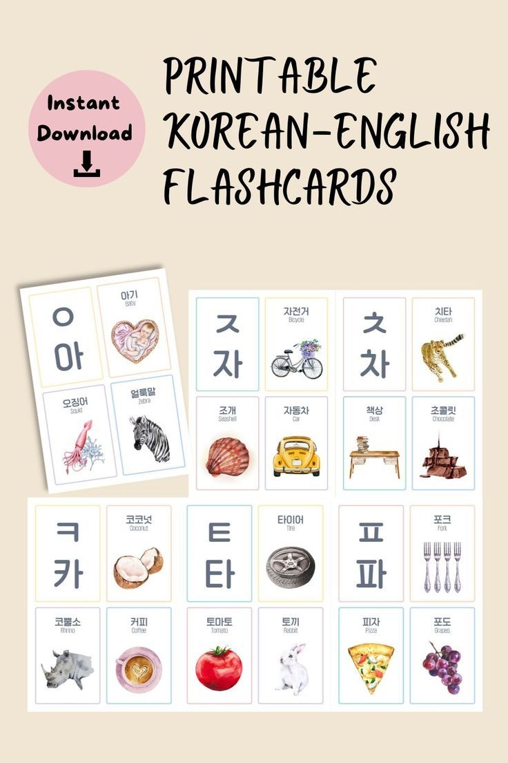 Korean Alphabet Flashcards Digital Download Hangul Learning Cards Korean Vocabulary Flash Cards