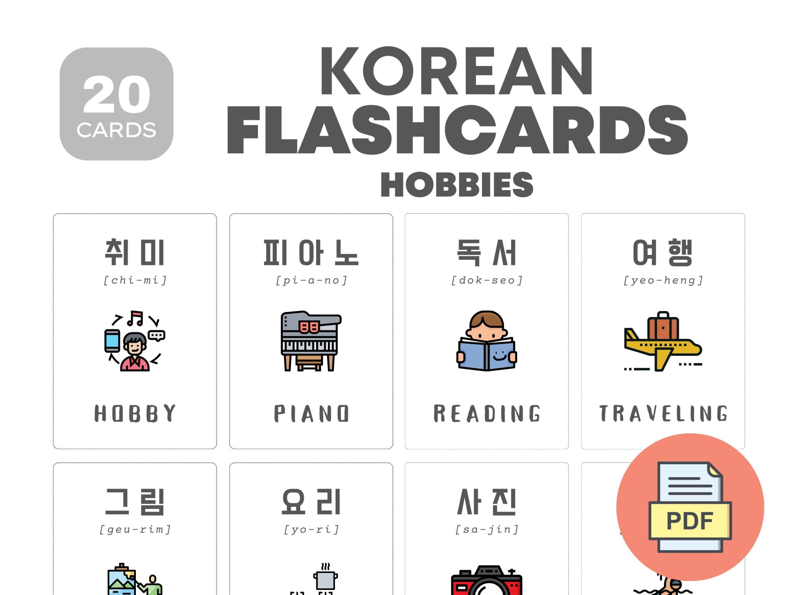 Korean Hobby Flashcards Learn Korean Language Educational Printable Cards Instant Download Bilingual Kids Material Etsy