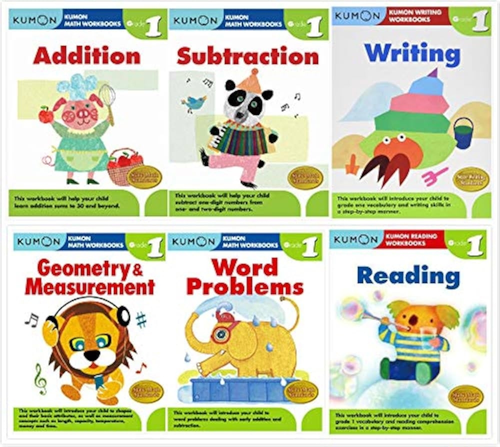 Kumon Grade 1 Complete Set 6 Workbooks Addition Subtraction Geometry Measurement Word Problems Reading Writing Amazon Books
