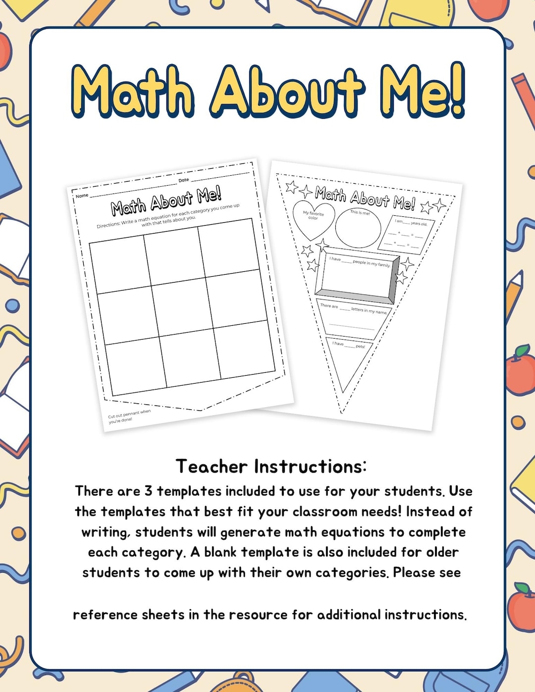 Me By The Numbers A Back to School Math Activity Math Coach s Corner