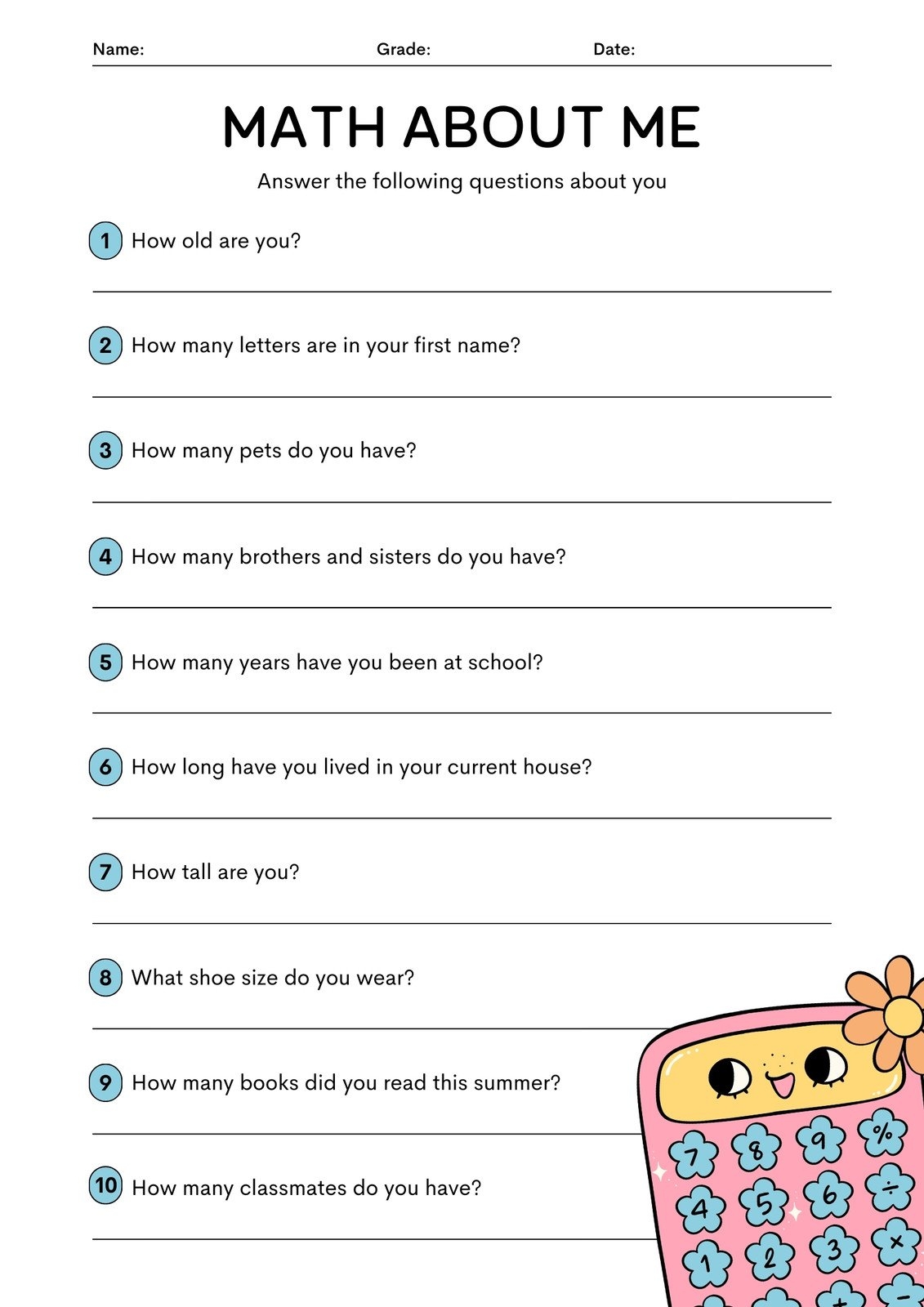 Whether you’re a math whiz or just getting started, the math about me worksheet is a valuable tool for learners of all levels. So why not give it a try today and discover a new way to make math more enjoyable and meaningful?