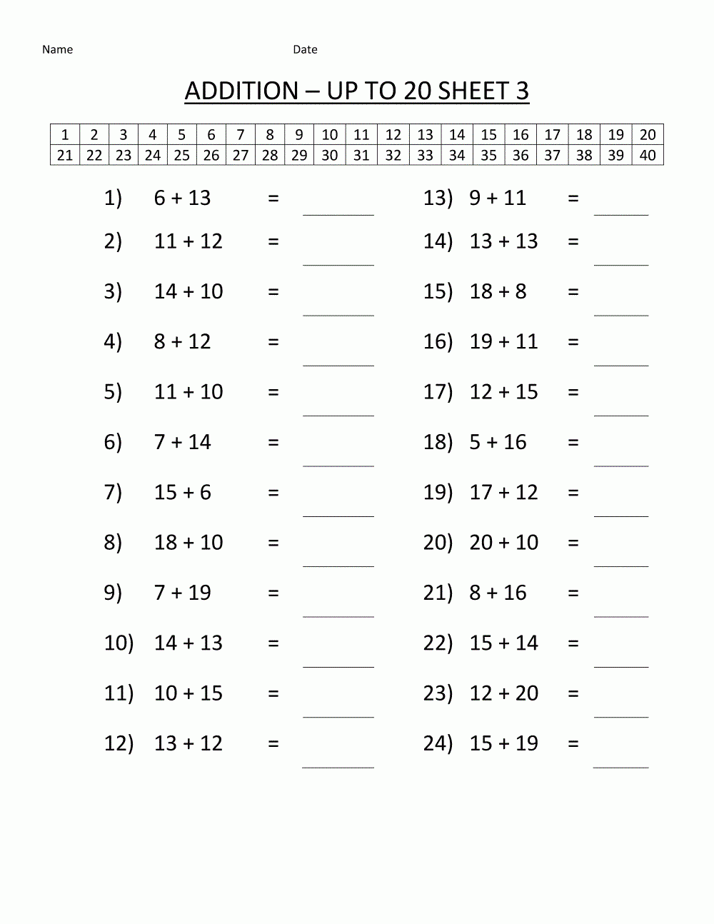 Math Facts Practice Sheets