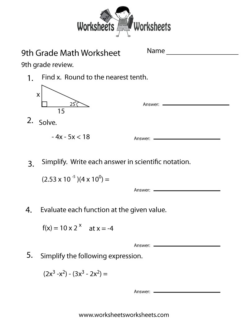 Ninth Grade Math Practice Worksheet Worksheets Worksheets