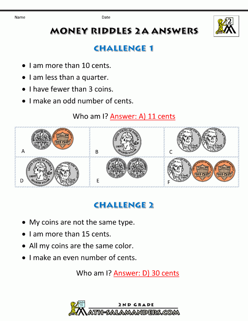 Money Math Worksheets Money Riddles