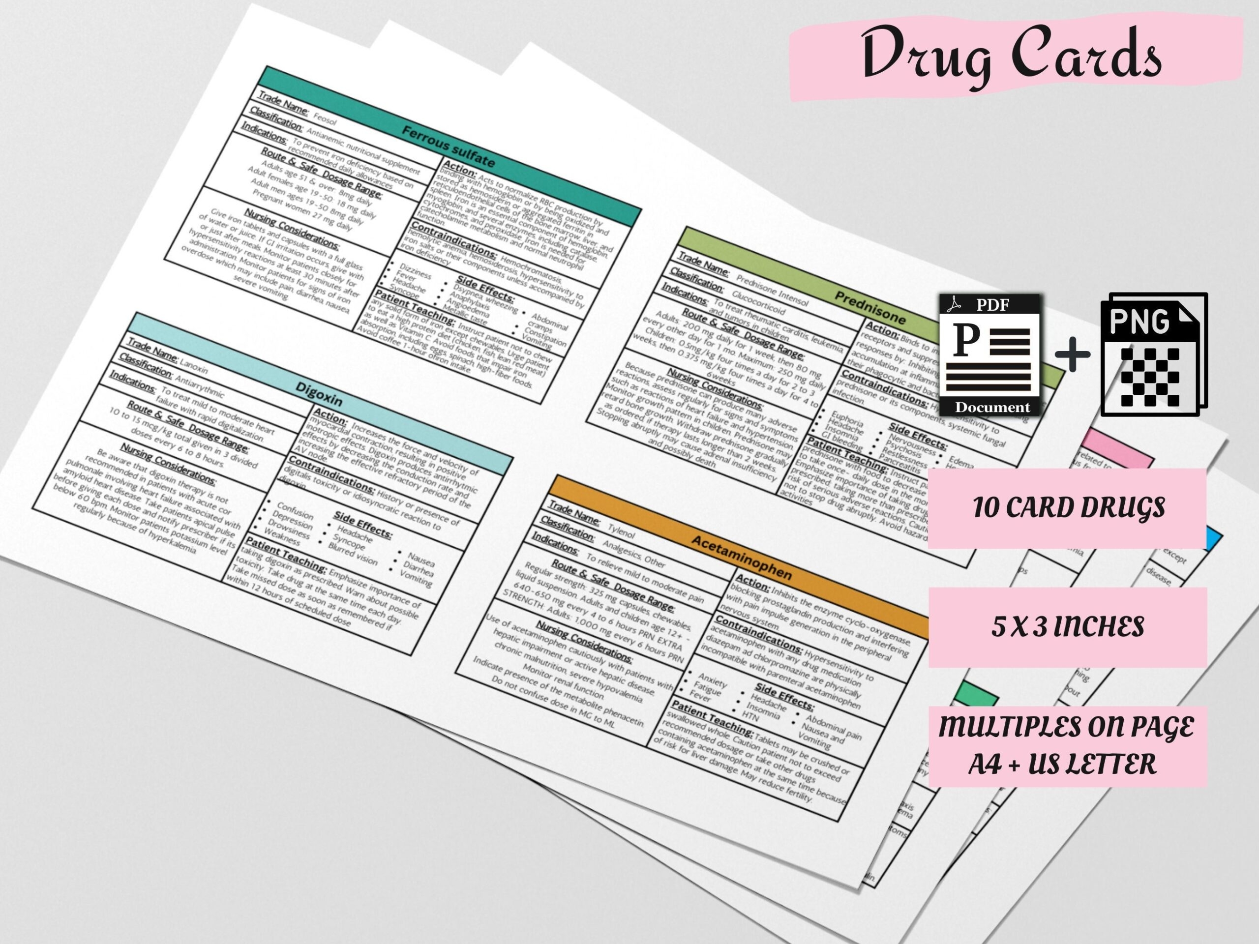 Student Nurse Drug Flash Cards 5x7in 7 Farben Etsy de