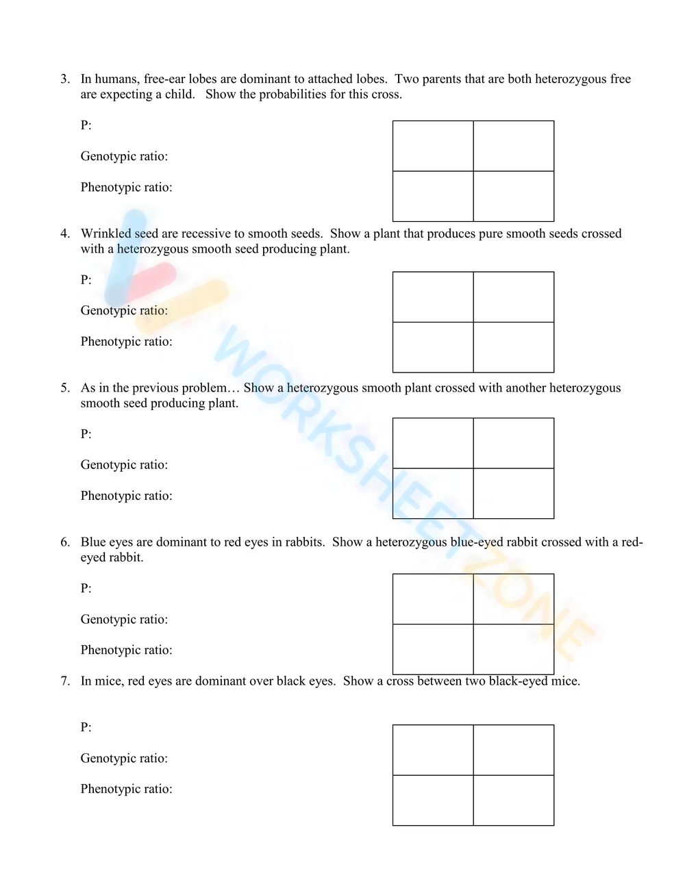 Mendelian Genetics Worksheet Punnett Squares Inheritance