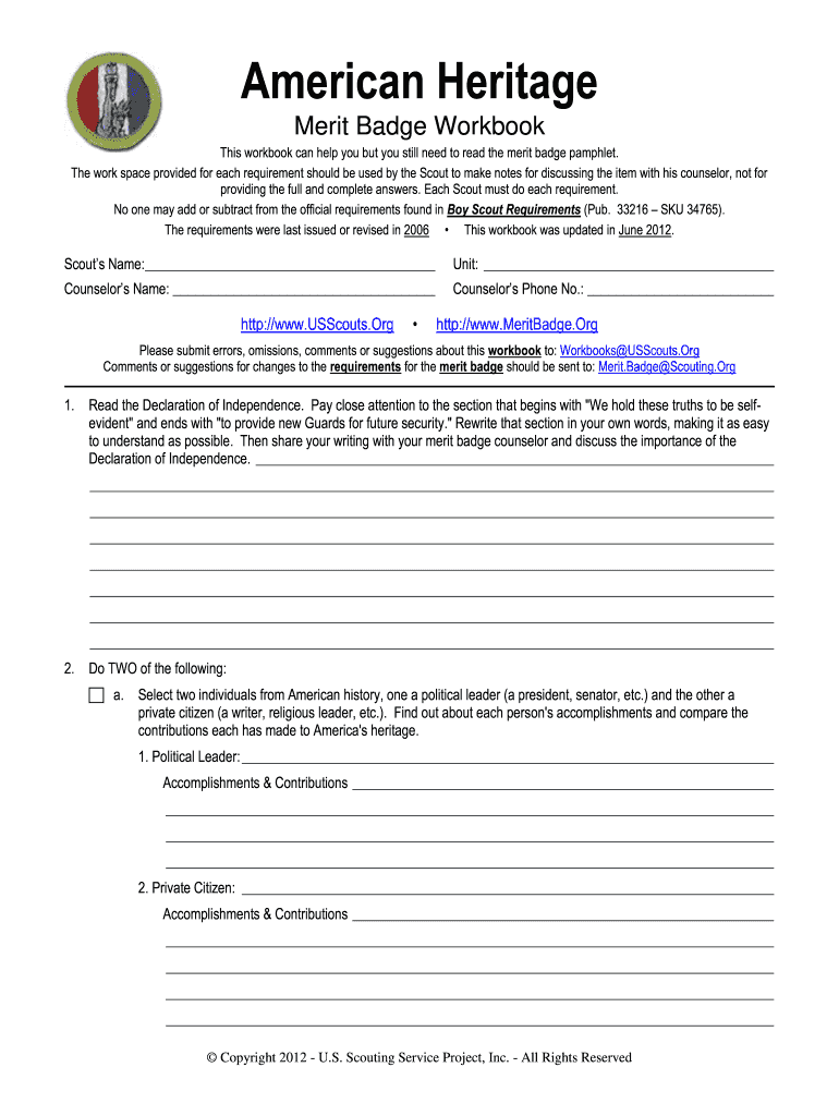 American Heritage Merit Badge Worksheet Fill Out Sign Online DocHub
