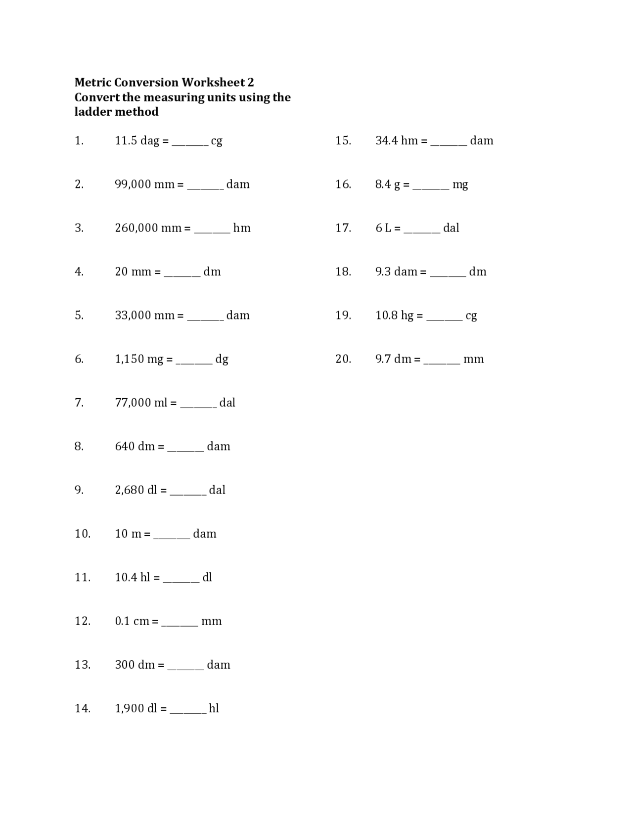metric conversion worksheet