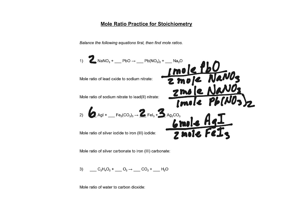 Mole Ratio Practice Worksheet Science Chemical reactions Stoichiometry ShowMe