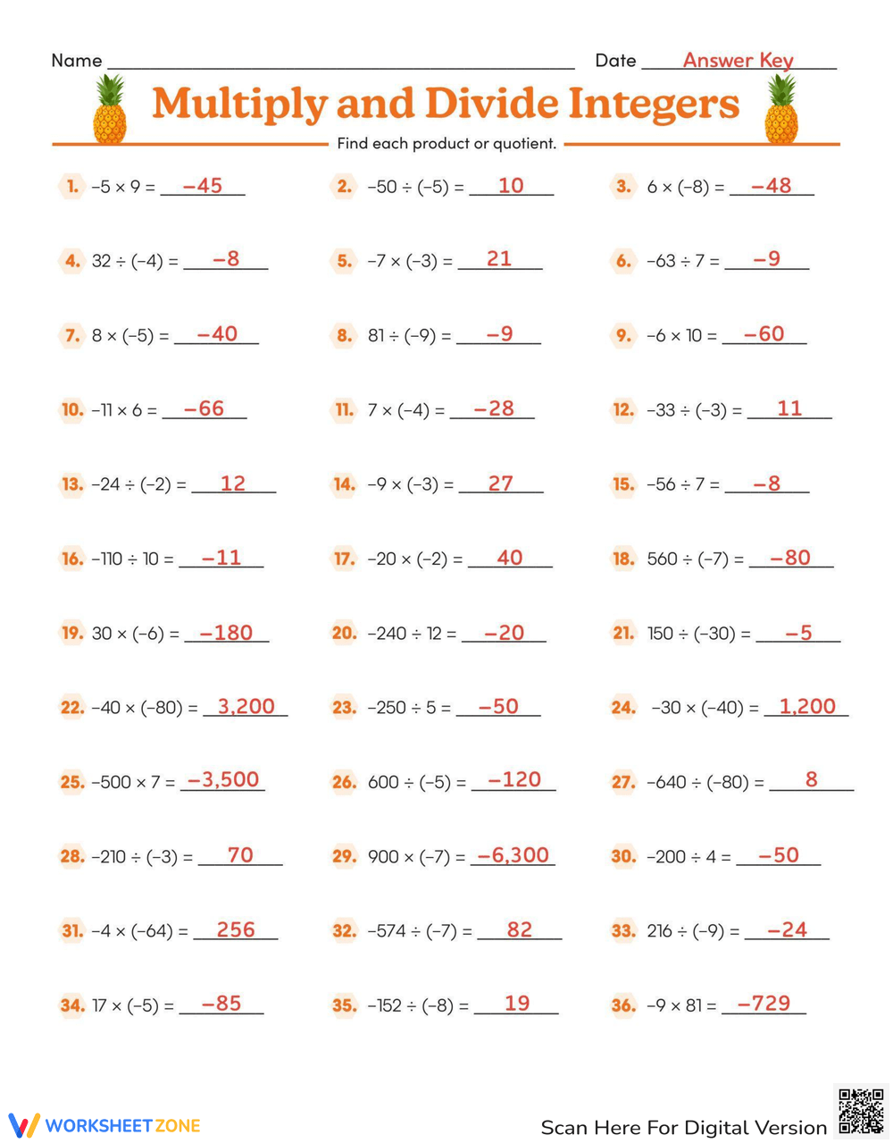 Whether you’re studying for a test or simply want to brush up on your math skills, our multiplying and dividing integers worksheet is a fantastic resource to add to your learning arsenal. So why wait? Start practicing today and see how much you can improve with just a little bit of effort and dedication.