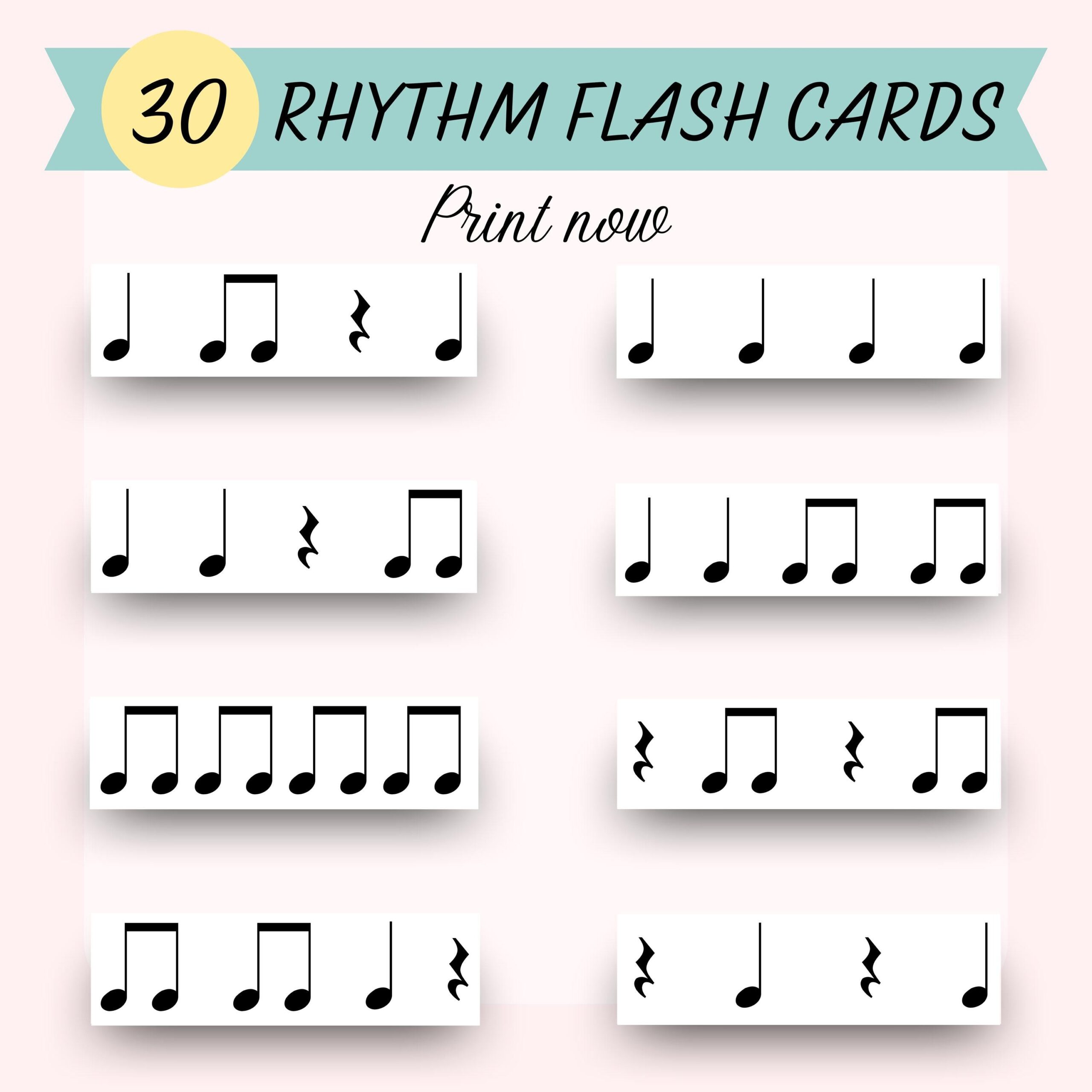 Rhythm Flash Cards set 2 Crotchet Crotchet Rest Joined Quavers Quarter Note Quarter Rest Eighth Note Etsy