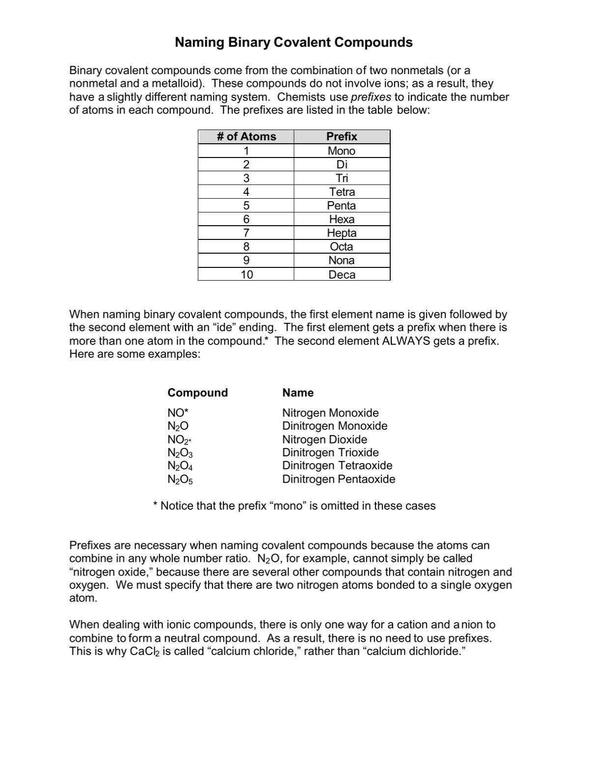 Printable Naming Covalent Compounds Worksheets Download