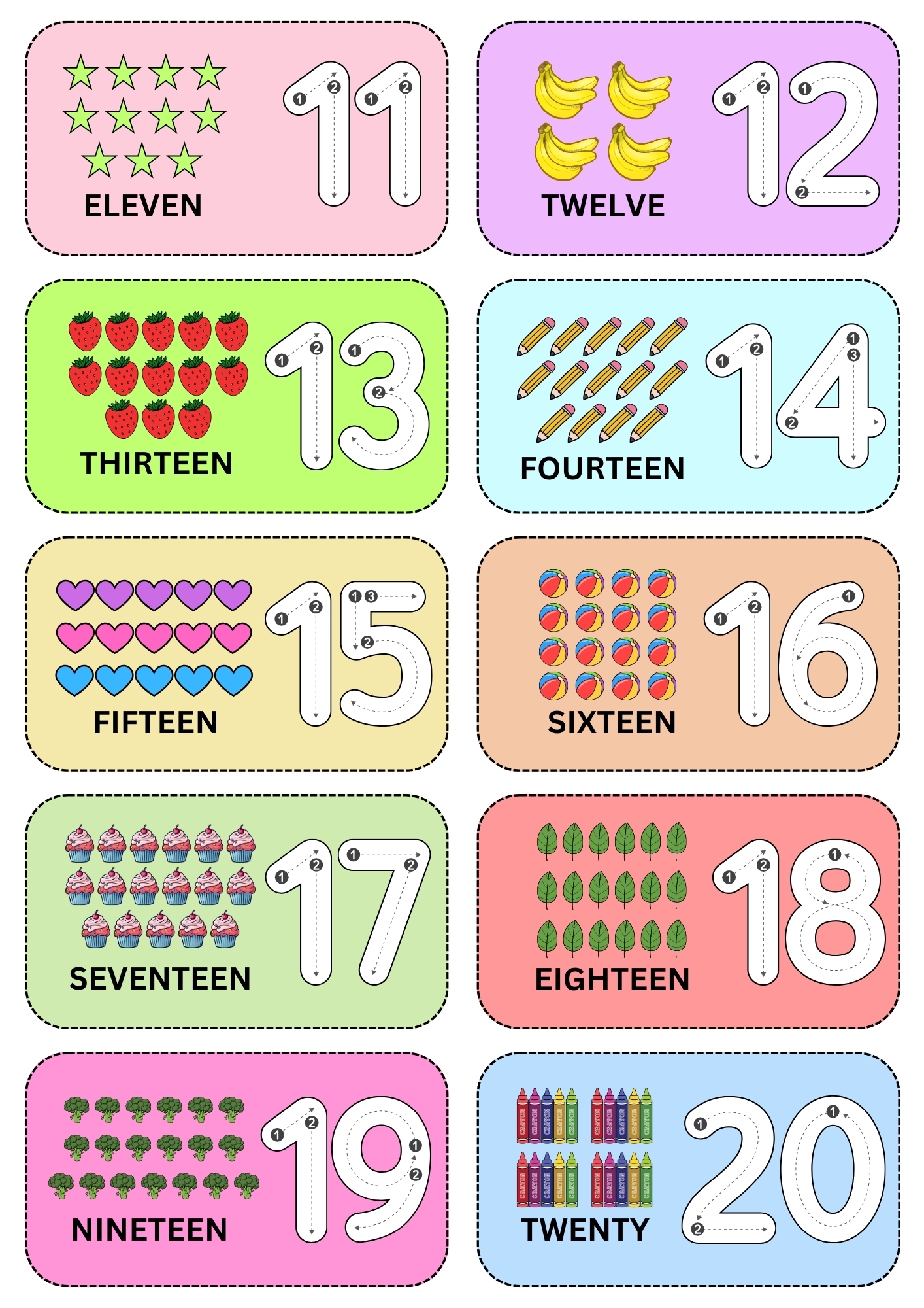 So why wait? Start using number flashcards 1-20 printable PDFs today and watch your child’s number skills soar to new heights. Learning numbers has never been easier or more fun than with these engaging and interactive flashcards. Get ready to see your child’s confidence and math skills grow with each flashcard session!