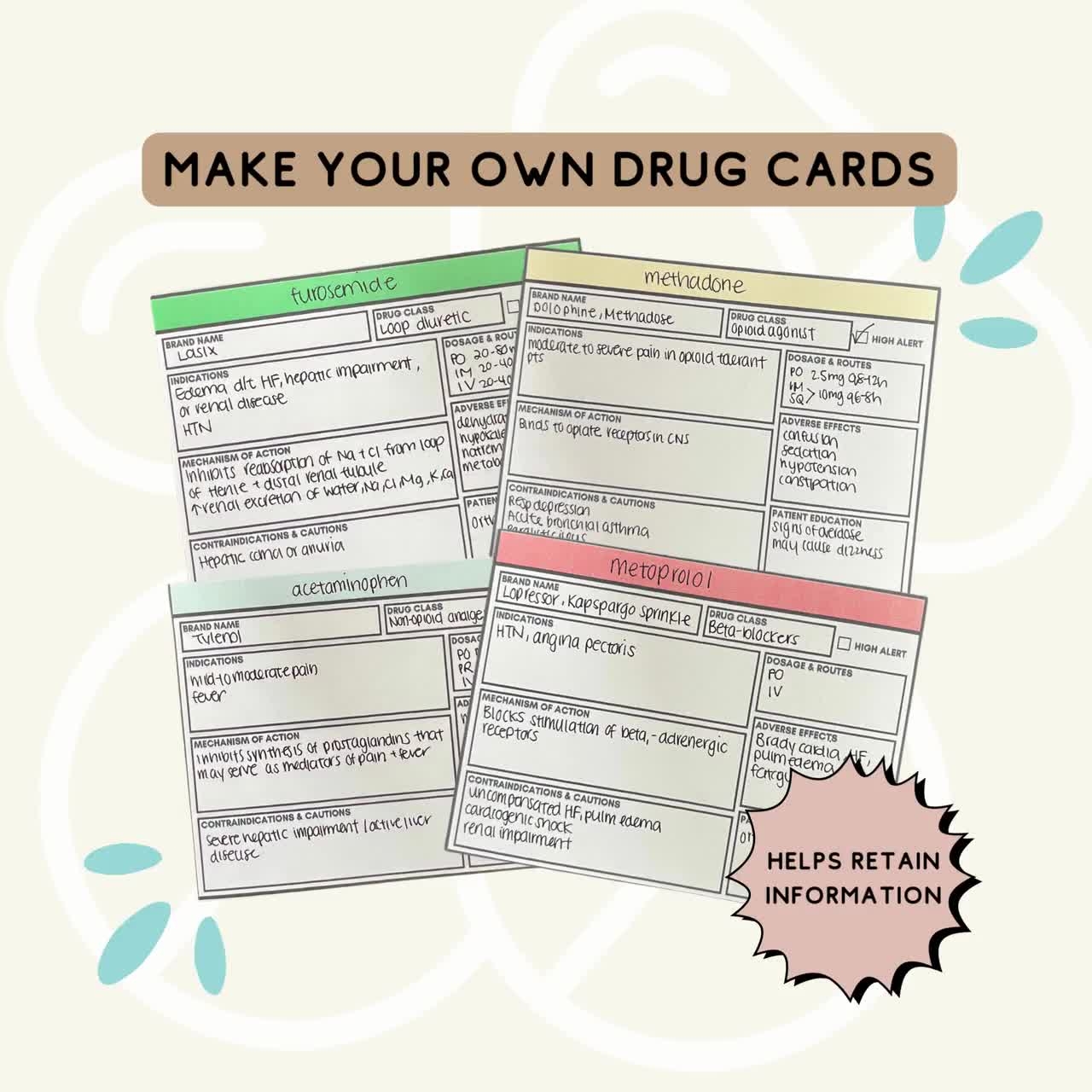 Flashcards also promote active learning and engagement, as you can test yourself on drug information and reinforce your memory through repetition. This interactive approach to studying can help you retain information more effectively and improve your overall understanding of medications.