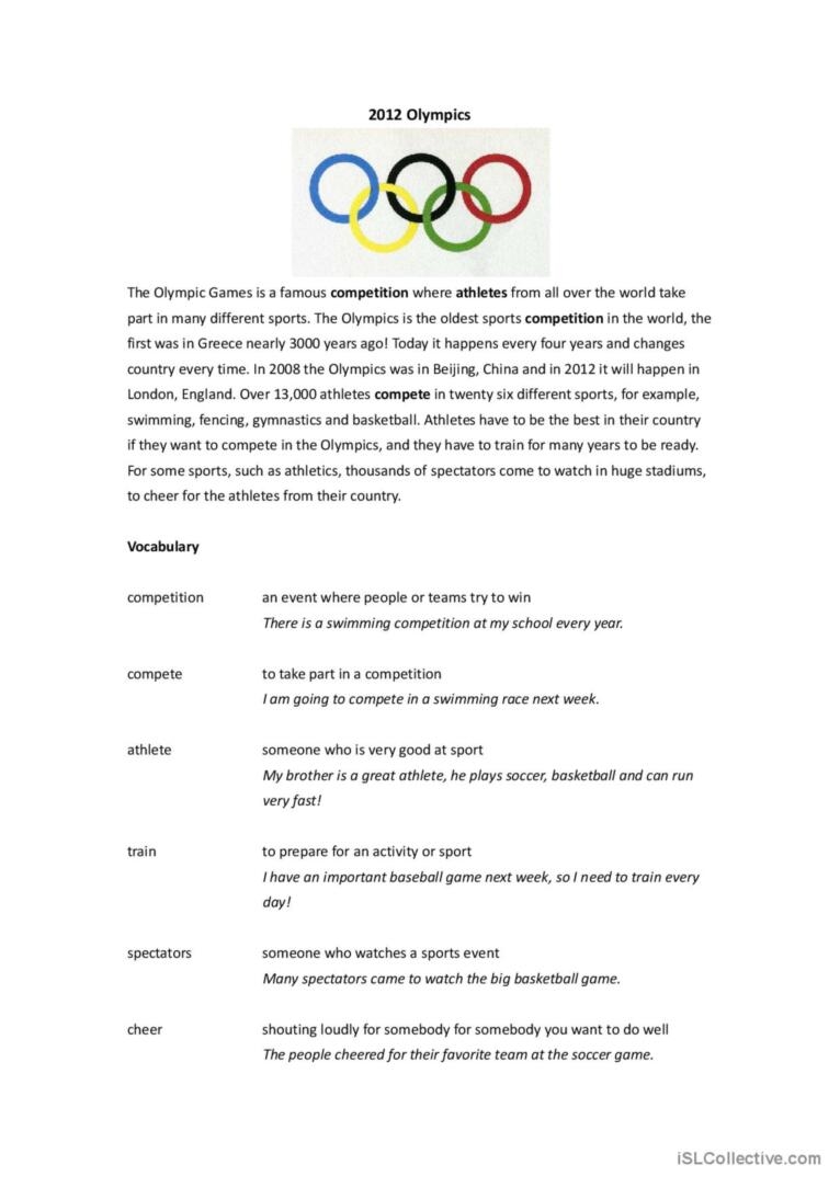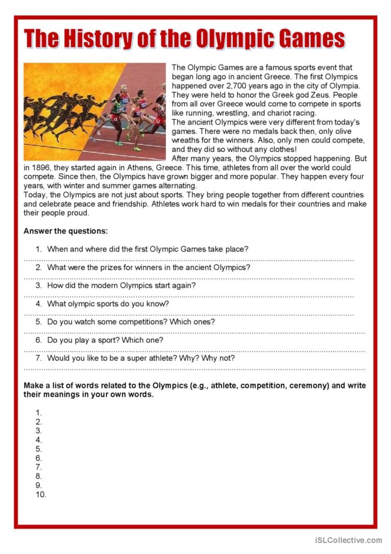 The Olympics are a thrilling event that captivates people worldwide. For educators looking to engage students in learning about the Olympics, reading comprehension worksheets can be a valuable resource. These worksheets help students build their reading skills while learning about the history, athletes, and events of the Olympics.