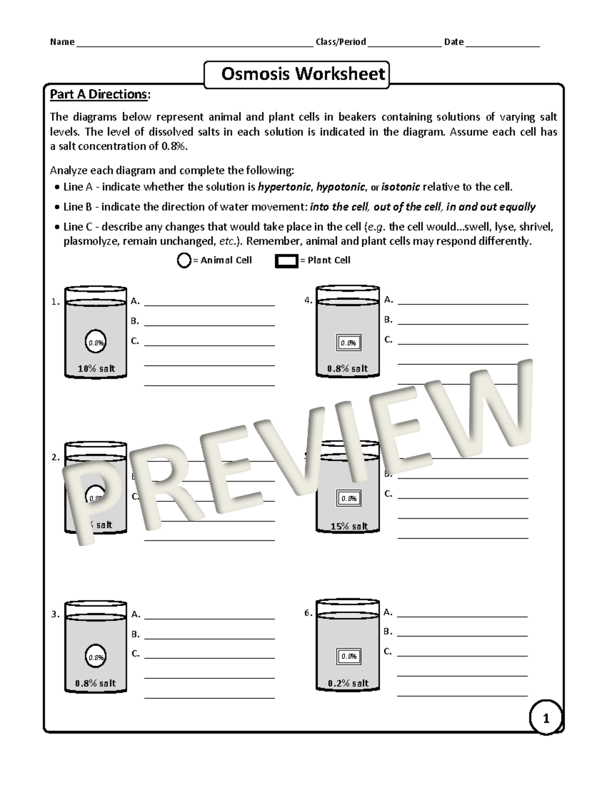 Osmosis Worksheet Answer Key
