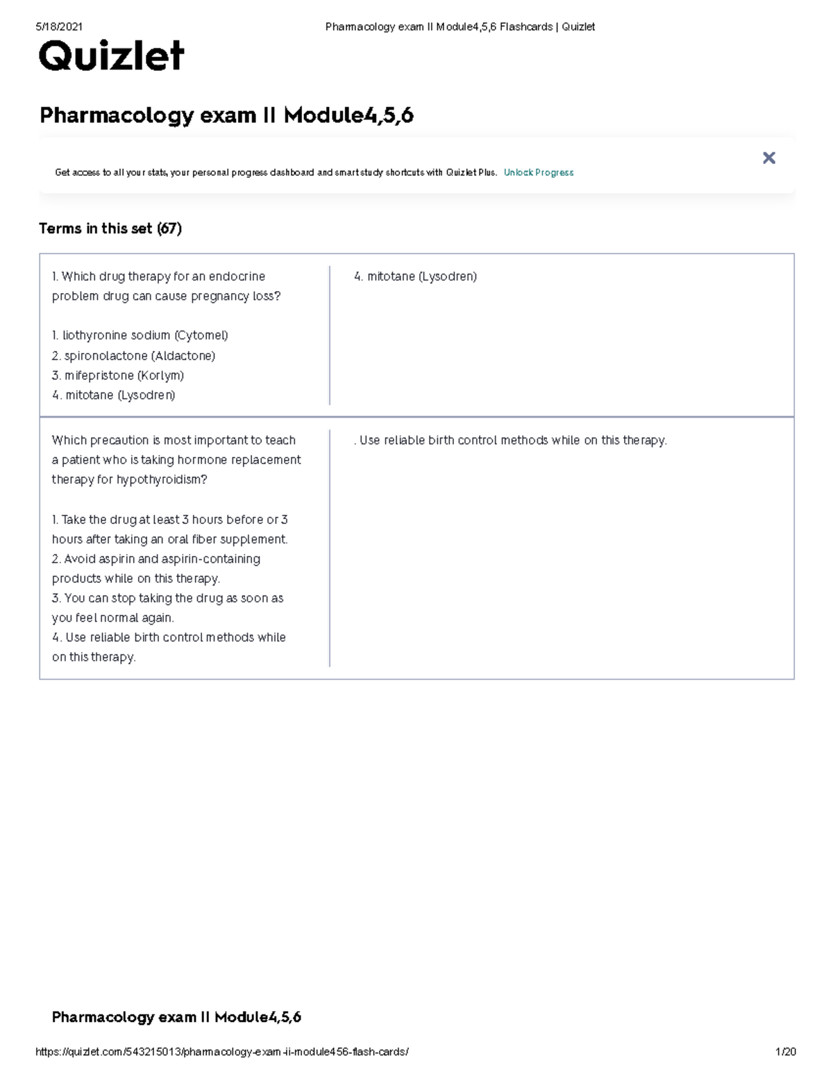Pharmacology Exam II Module 4 5 6 Flashcards Quizlet Pharmacology Exam II Module4 5 Get Access To Studocu