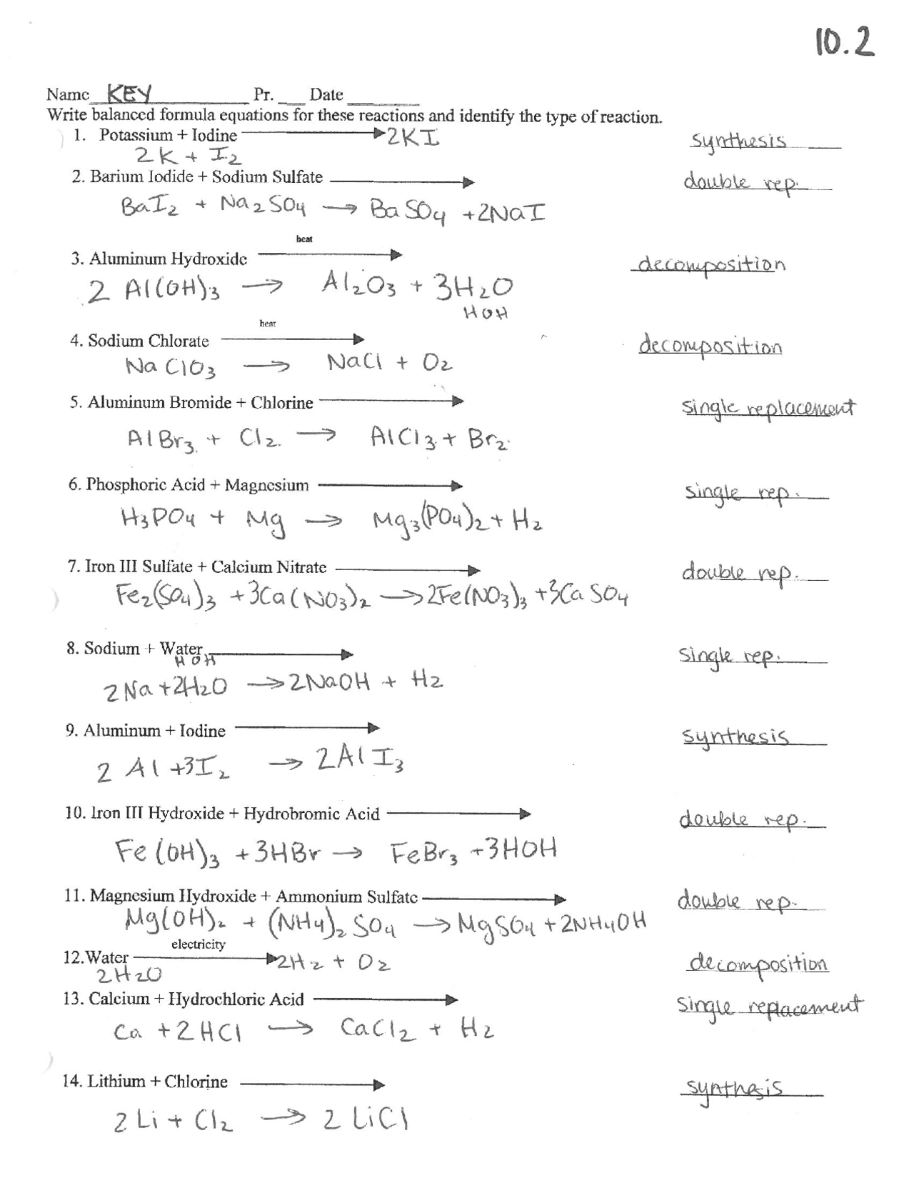 Balance Equations And Predict Reactions Worksheet Key Exercises Worksheets Library