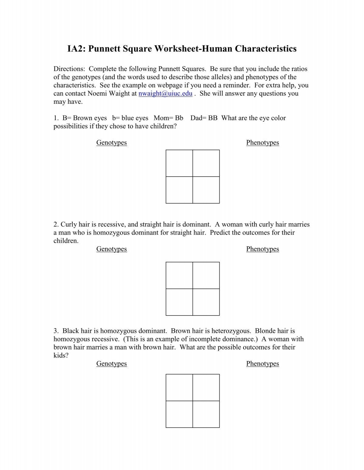 Punnett Square Worksheet