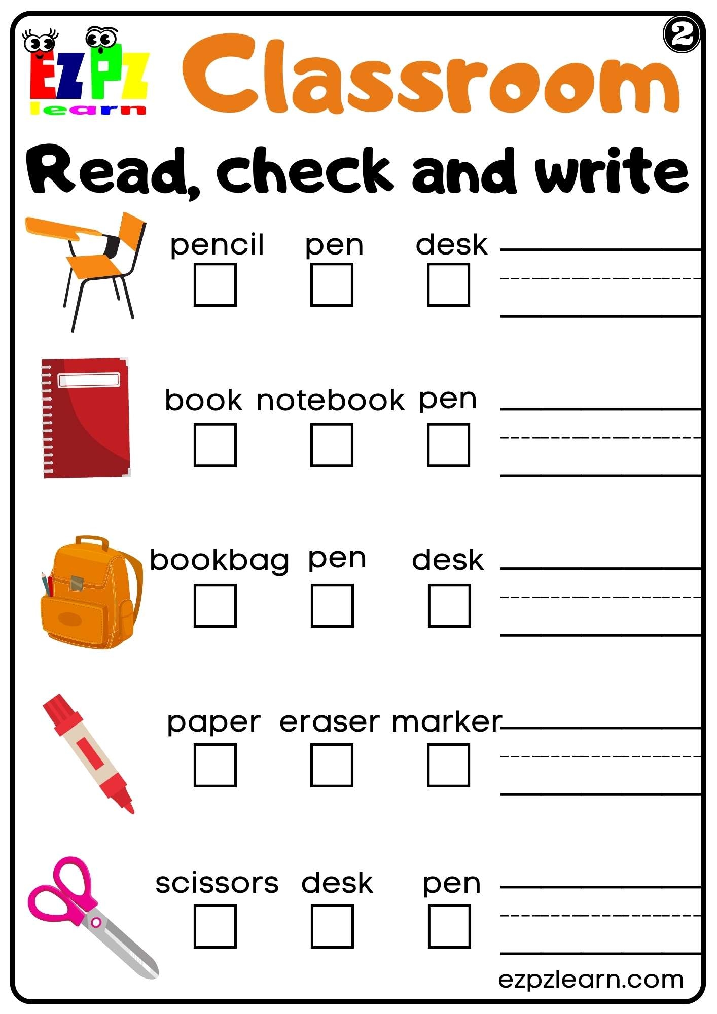 Classroom Read Check And Write Worksheet Set 2 For Kids Ezpzlearn
