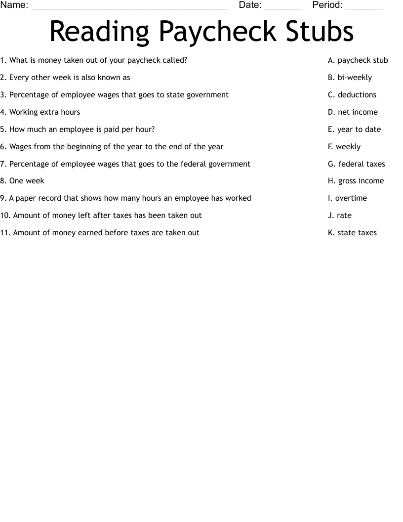 SOLUTION Reading Pay Stub Studypool Worksheets Library