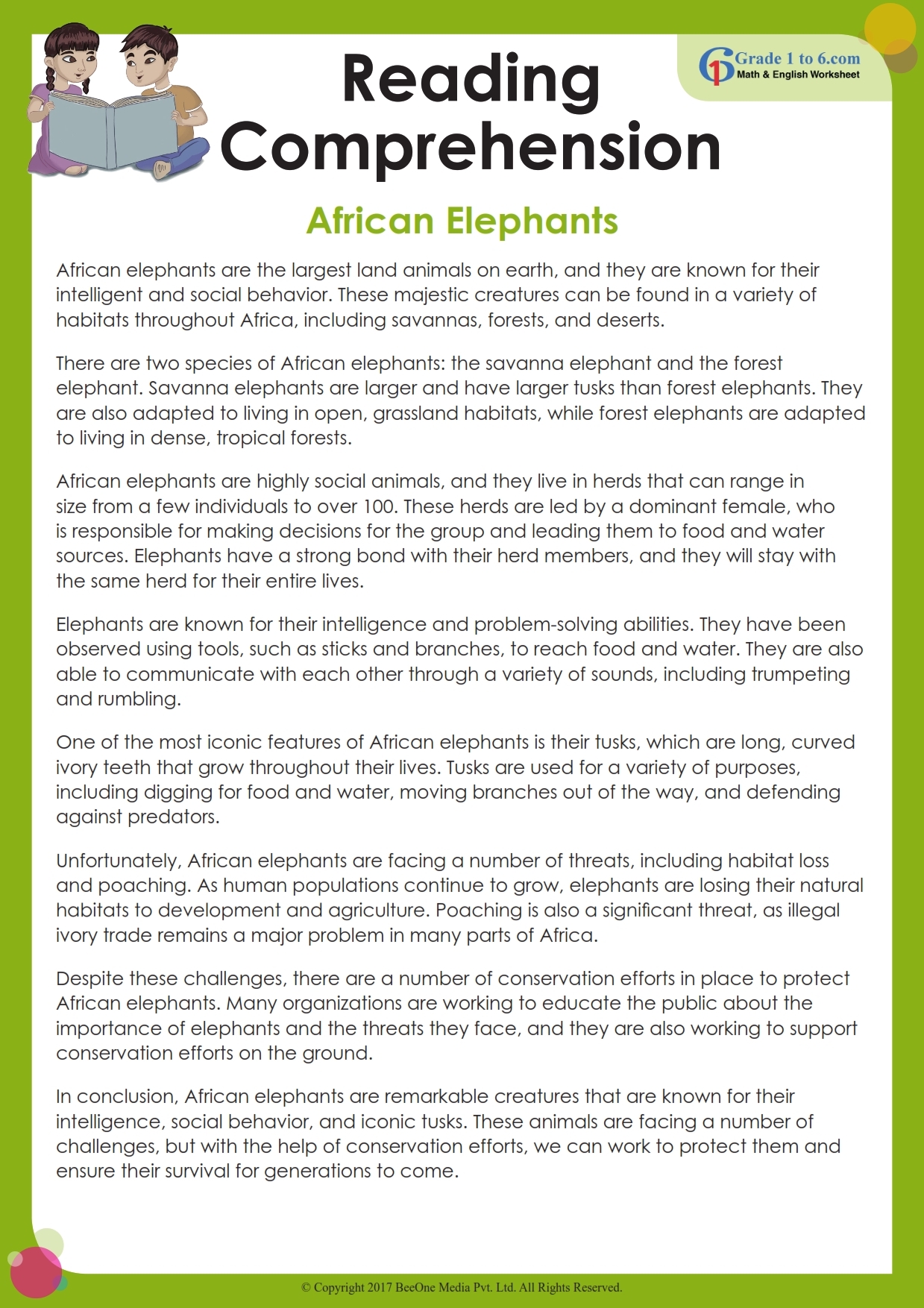 Comprehension Passage For Grade 6 Ge English ESL Worksheets Pdf Doc