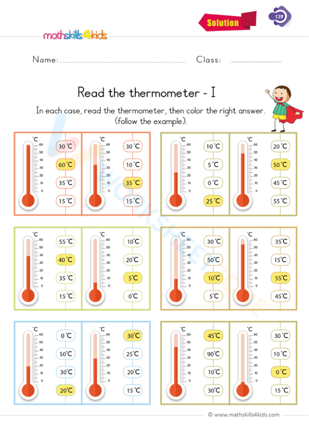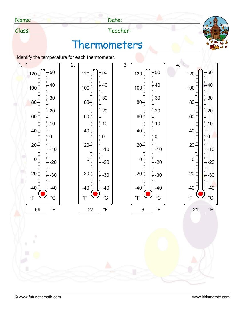 reading thermometers worksheet