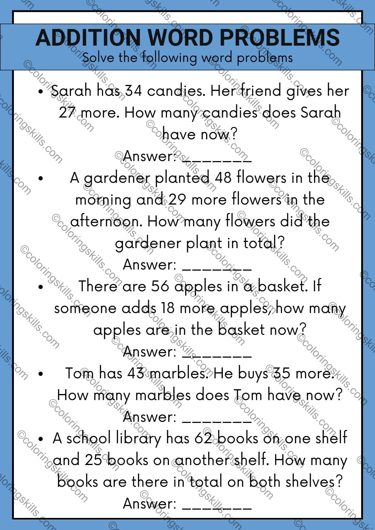 Free Math Word Problems Create Print Worksheets 2025
