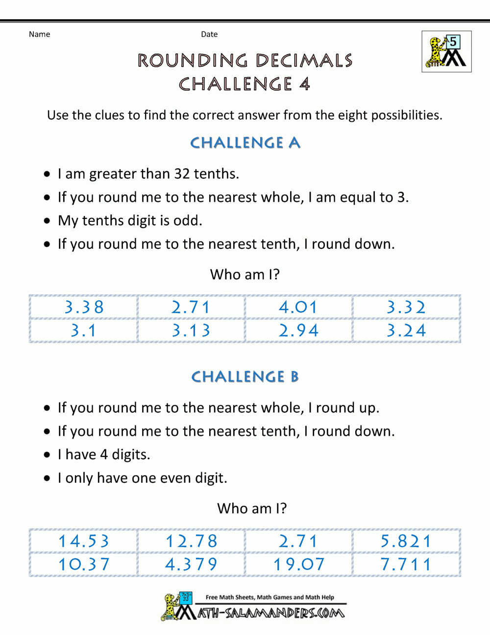 Rounding Decimals Worksheet